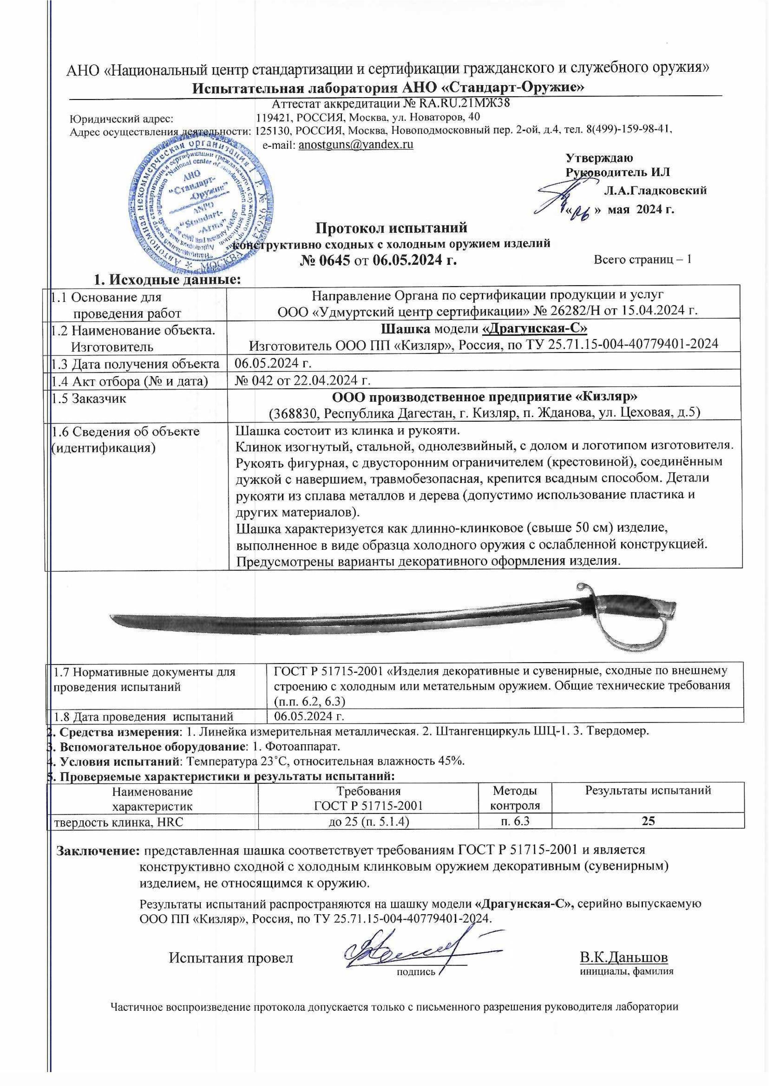 Шашка боевая "ТКВ-2" посеребрение