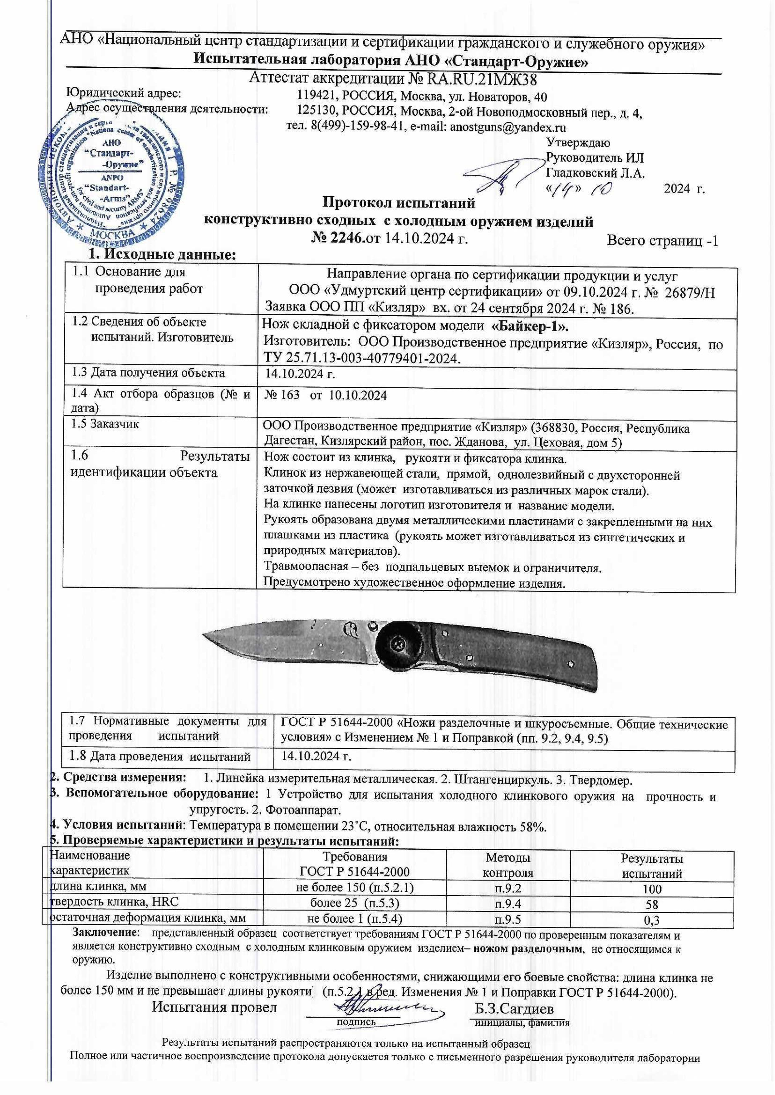 НСК "Байкер-1 рукоять дерево