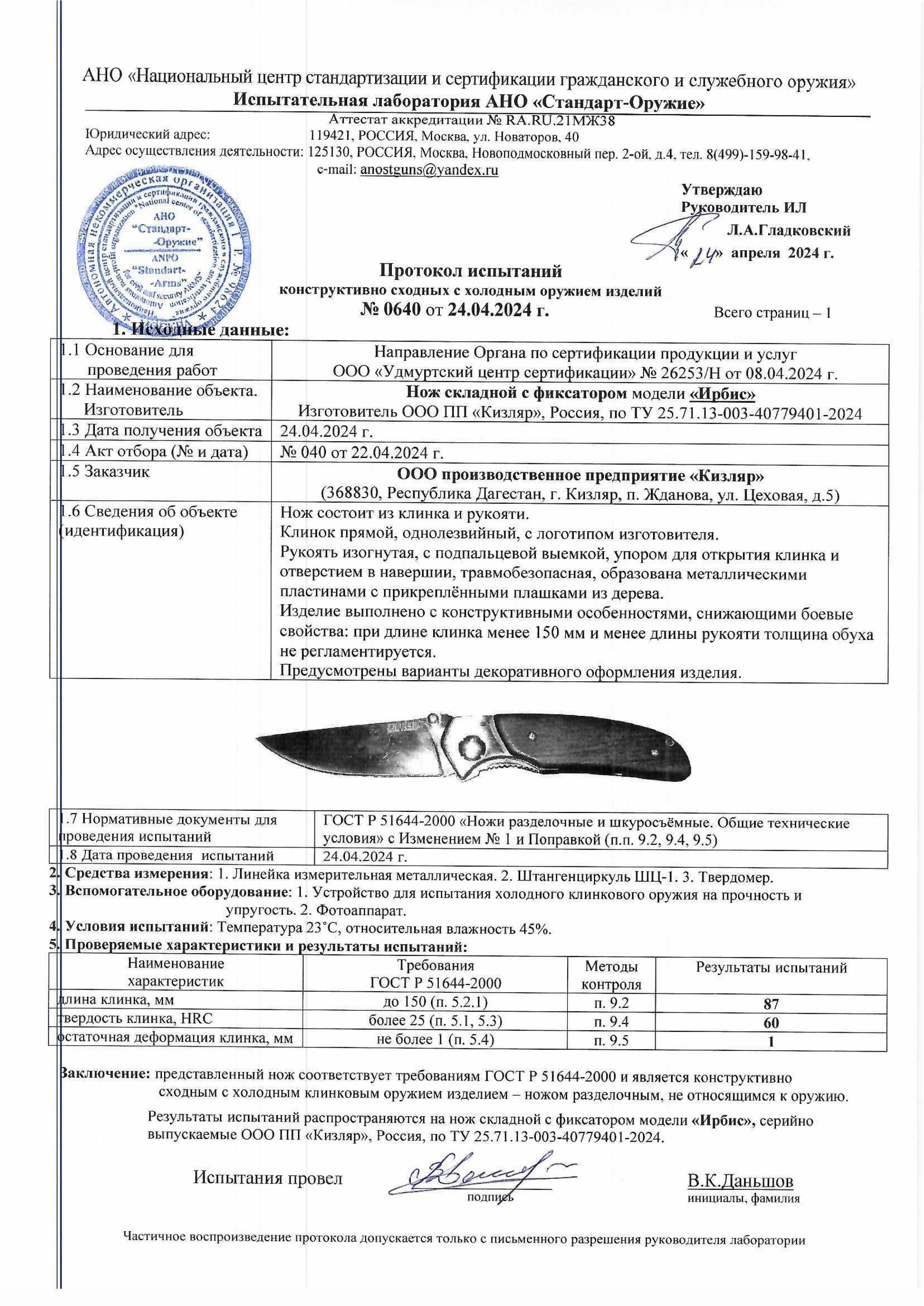 НСК "Ирбис" рукоять дерево