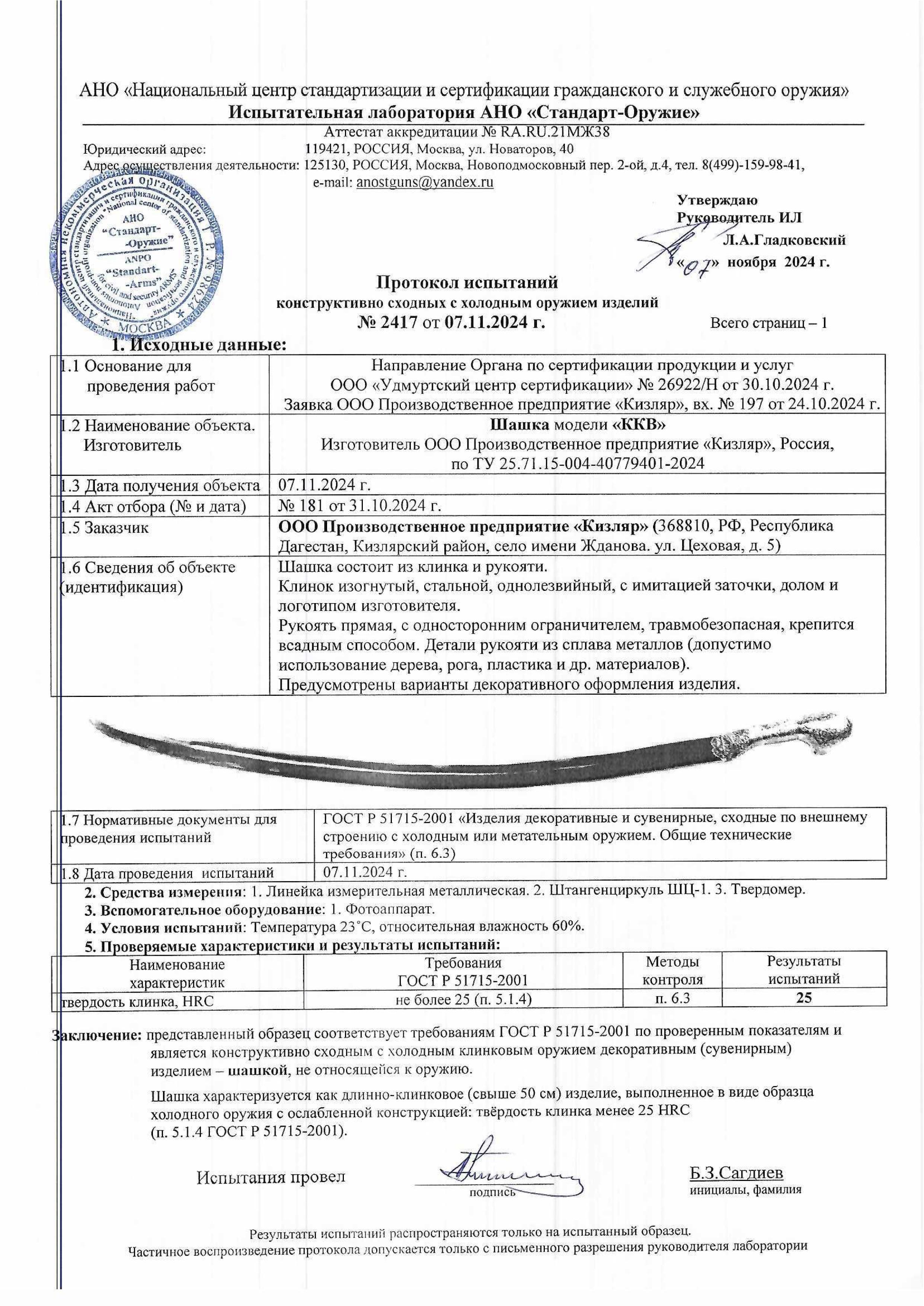 Шашка сувенирная "ККВ" мельхиор